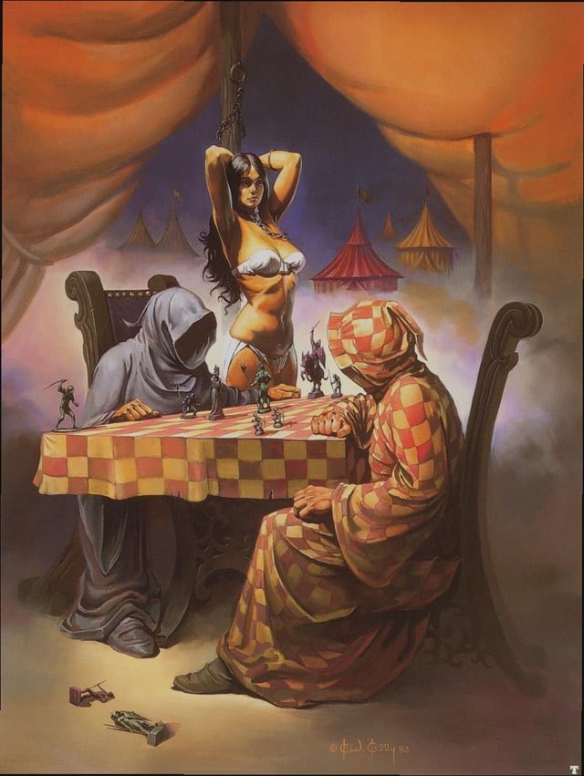 I think the analysis is dude wanted to paint some boobs to fill in otherwise empty space. Ken was a fantasy artist and I’m not trying to degrade the genre as a whole, but they aren’t exactly on some Guernica stuff. Love me some Frazzeta too but what you saw was largely what you got with him.