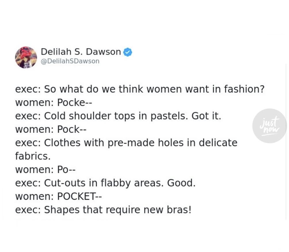 Still amazed at the tiny front pockets most women have. Recently I’ve been seeing pants where the front pocket is completely fake.