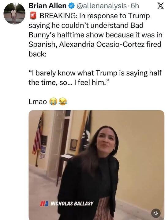 In other news: representative says something witty in response to someone saying negative stuff about halftime show. More on that at 11.