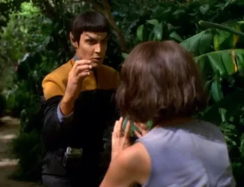 Tuvok, pharaprasing, order to: Tom Paris, to laid with B’ellana Torres, “or she gonna die” that porn-plot is delivered with a serious tone quote. Then the vulcan cames back to fight for mating porpuses.