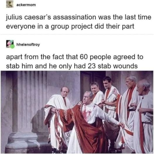 Tbf, Brutus didn’t go for a killing blow. He stabbed Caesar right in the dick. I’d say he deserved what he got.