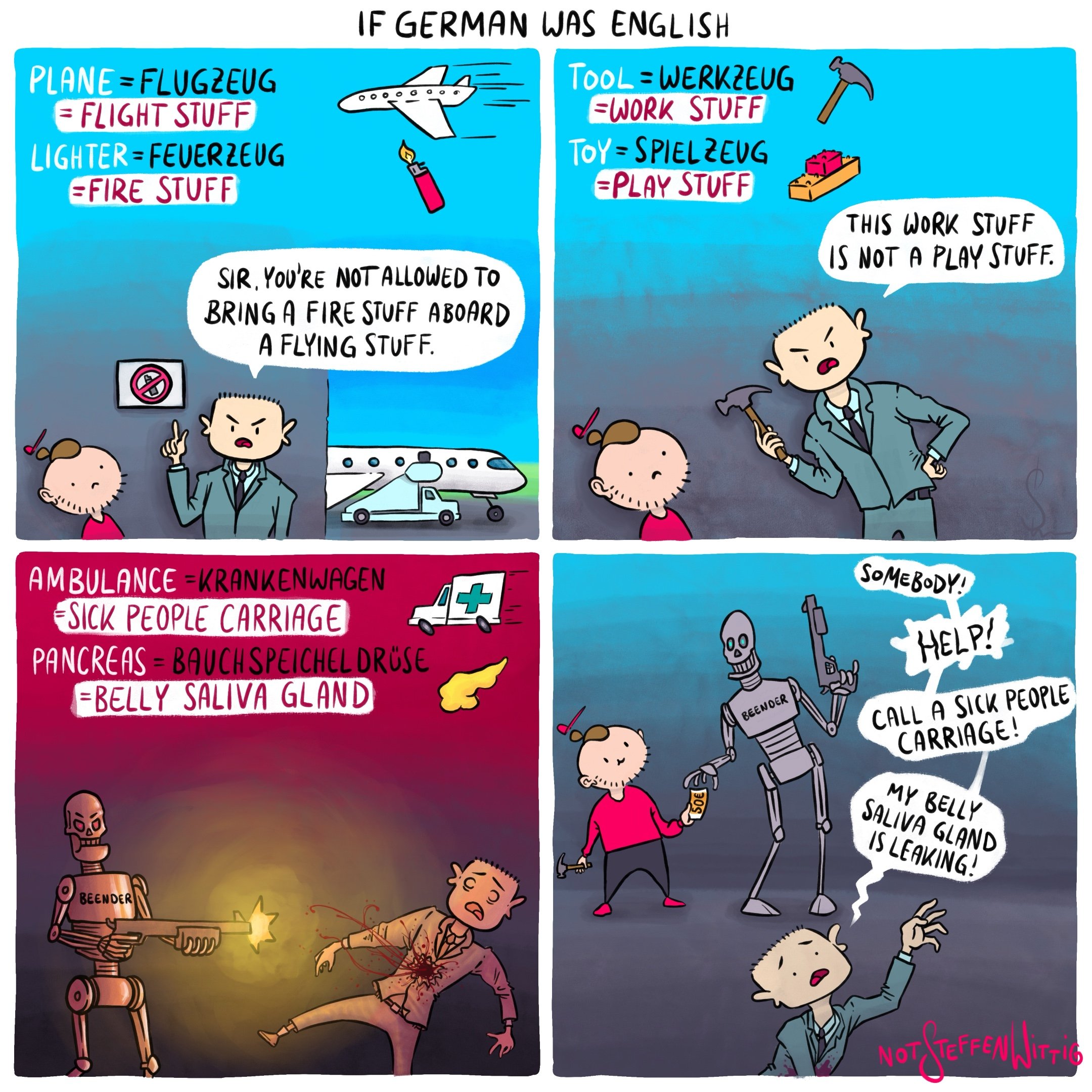So Flugzeug is flight all the stuff to fly like an airport and fuel and air and engine and…