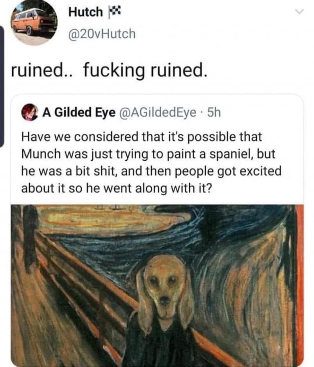 the guy made like 5 versions of the painting, none of which look anything like a spaniel, but that is a pretty funny fanart of it.