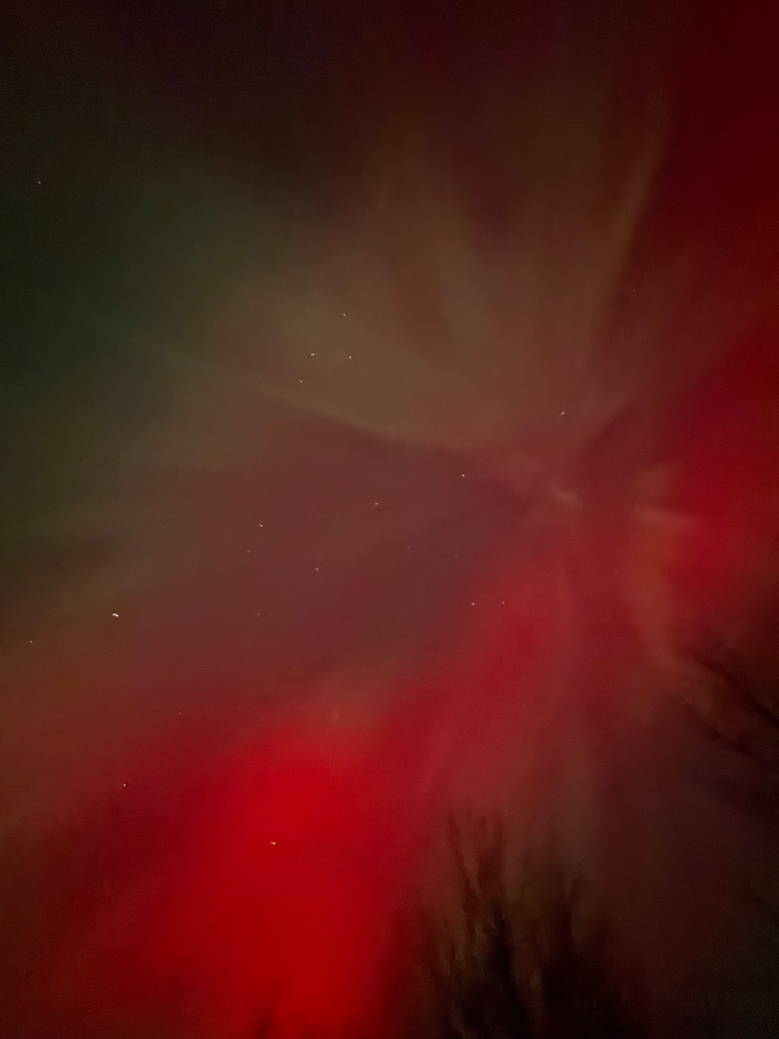My mother is obsessed with the northern lights. She went out last night to take pictures, and in true boomer fashion had her flash on.