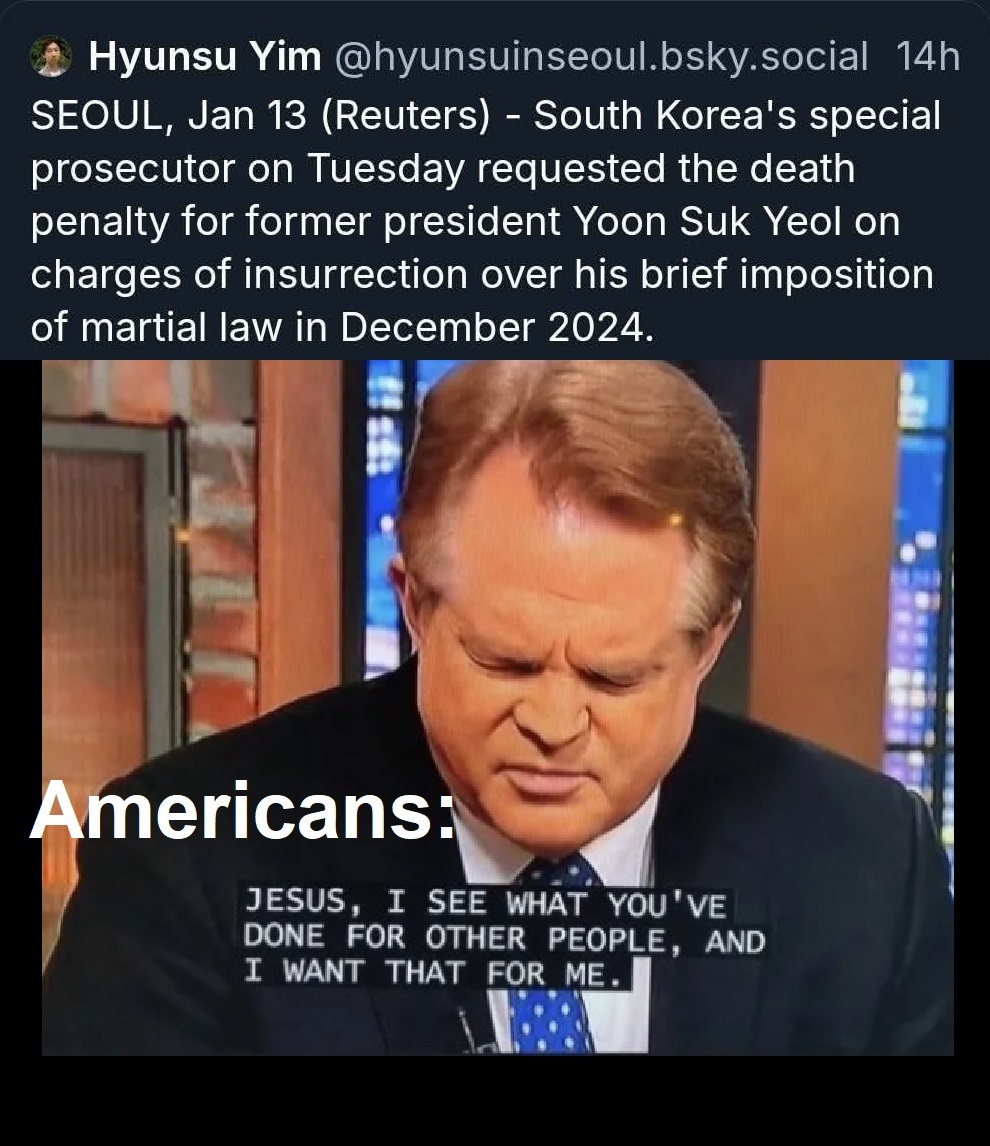 Aljernon@lemmy.today to Political Memes@lemmy.world · 1 month agoBased South Korealemmy.todayimagemessage-square3linkfedilinkarrow-up1194arrow-down10