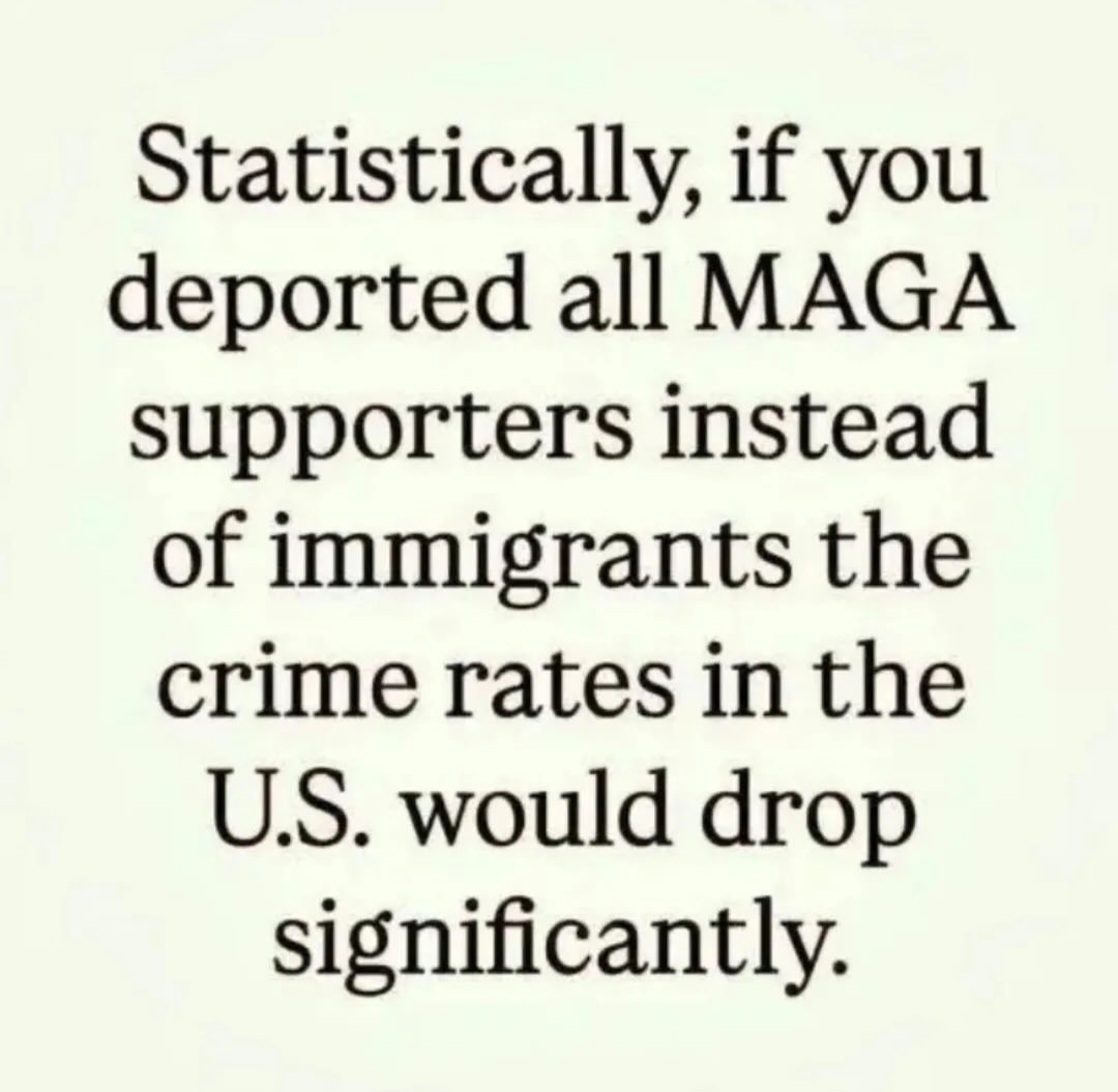 I just read this to my mom, and said “MAGAs commit WAY more crime than immigrants,” and she replied, “MAGAs commit way more crime than EVERYBODY.”